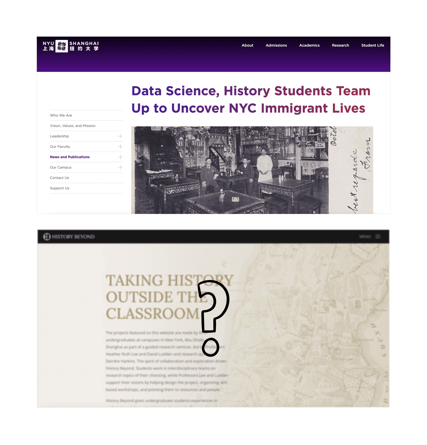 Humanities Research Lab is a multi-campus NYU project researching the significance of New York City immigrants. The lab had no web portal to integrate project creation and showcasing, making further development difficult. Our team set out to build an original data visualization portal from scratch — designed for the professors and students who would use it for academic teaching and learning.