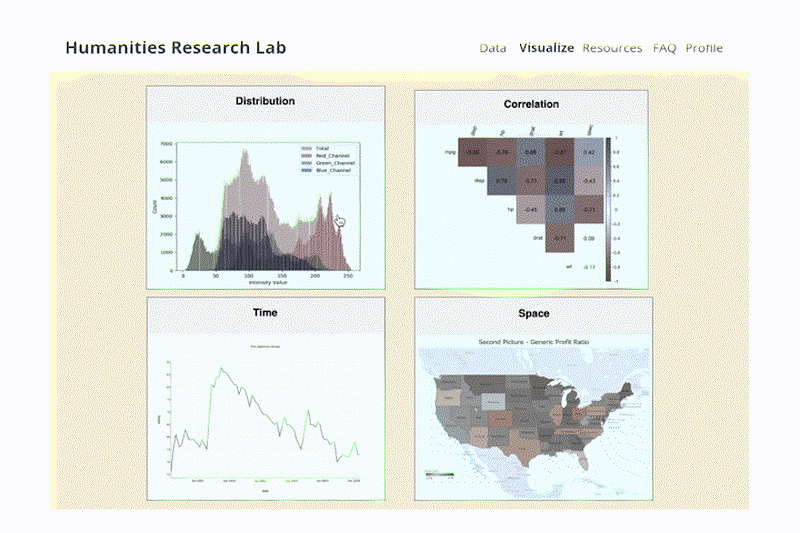 An interactive portal for flexible, real-time data visualization for historical research for Humanities Research Lab at NYU.