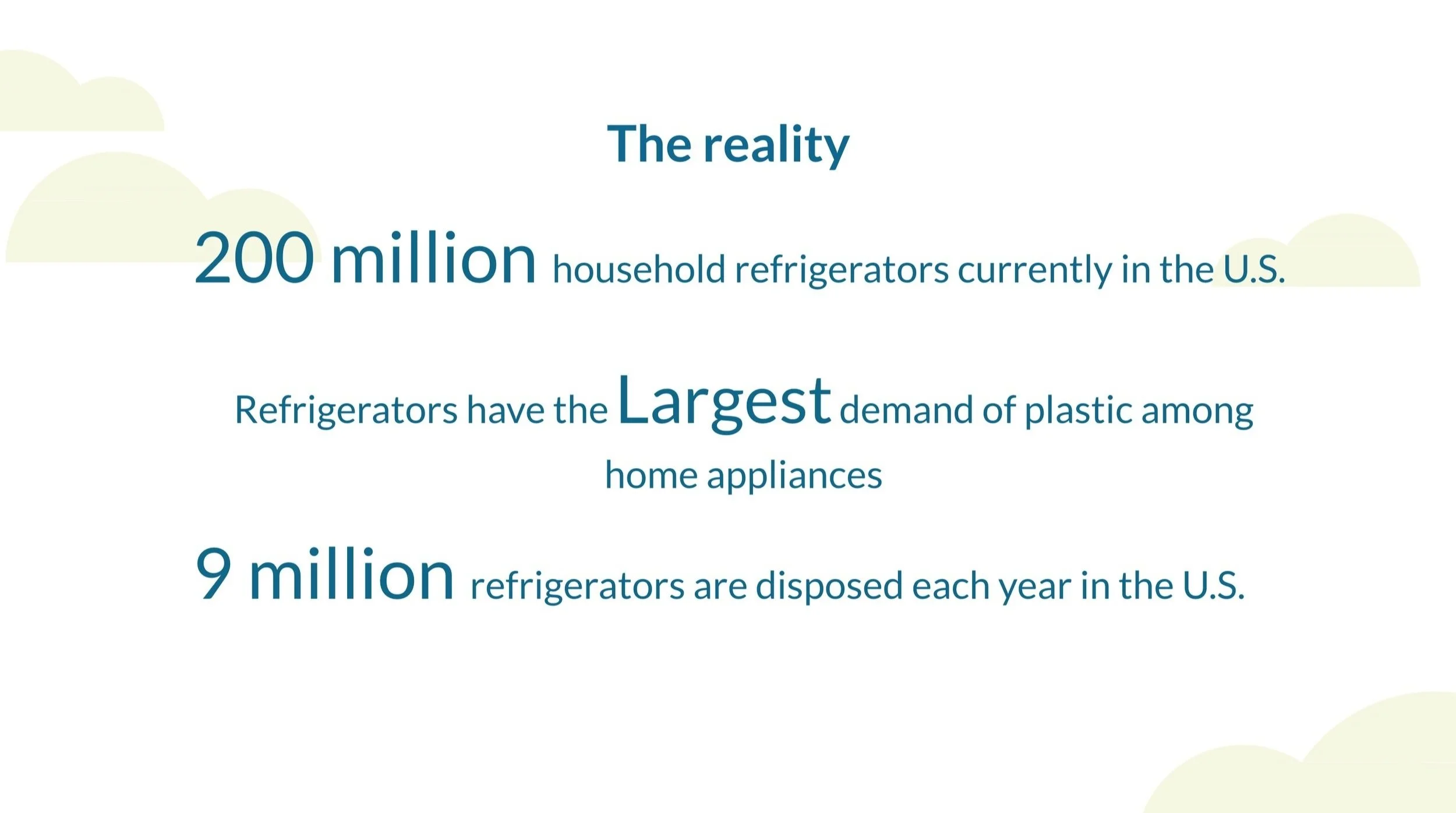 This semester-long academic partnership with Electrolux gave our cross-functional team a unique opportunity to tackle refrigerator sustainability at scale. Electrolux, a global home appliance manufacturer, is committed to reducing the environmental footprint of its products. Our team explored two angles: sustainable materials as alternatives to plastic, and ways to empower customers to make more eco-conscious purchasing decisions.