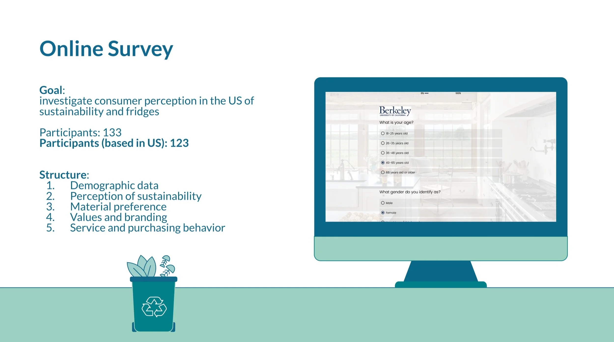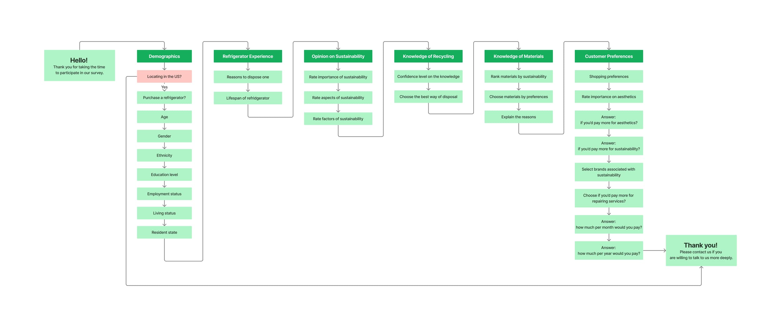 Having gained a thorough understanding of the materials, we shifted our focus to the consumer perspective, recognizing that purchasing power ultimately resides with the customers. We questioned which materials customers would prefer, what factors they consider when purchasing a refrigerator, and their interpretation of sustainability. To delve into their preferences and how these influence their purchasing decisions, we crafted a survey using Qualtrics to gather data.